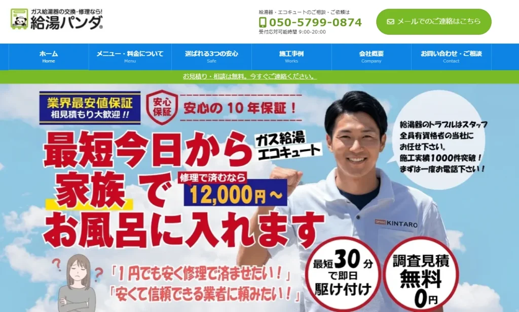 メーカーからの直接仕入れや自社施工により中間マージンをカットし、本体価格の最大91%オフなど業界最安値クラスの価格を実現しています。給湯器の不調や故障時には最短当日で駆けつけ、迅速な修理・交換に対応。