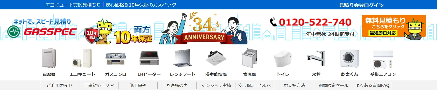 | 対応 サービス | 給湯器・エコキュートの設置・修理・交換 |
