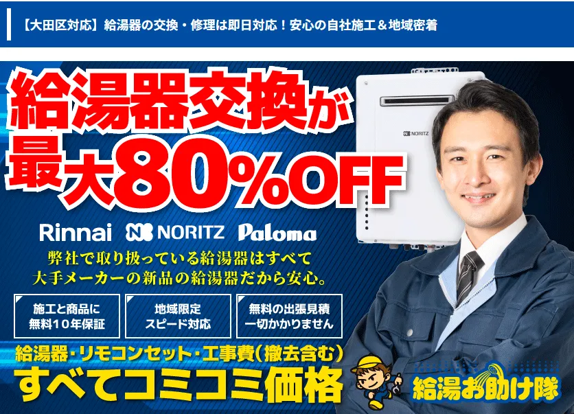 - 三大給湯器メーカーの正規販売店で安心
