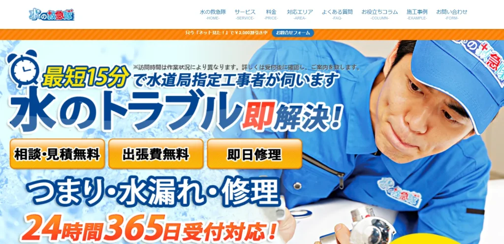 また、被害を最小限に抑えるには、「どれだけ早く現場に来てくれるか」が重要。最短時間で駆けつけてくれる業者を選ぶのが正解です。